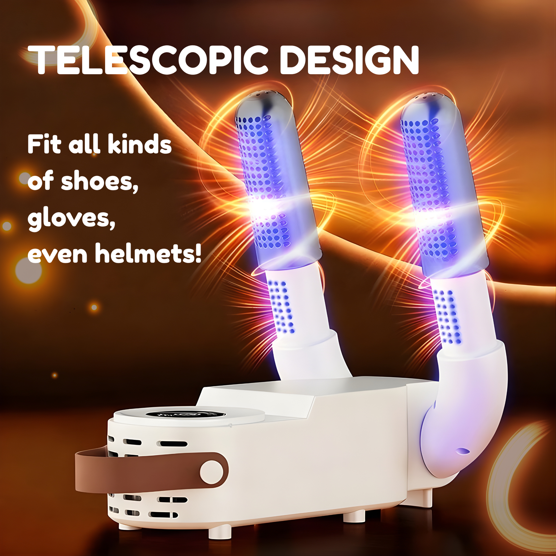 Telescopic outlets fit sneakers, boots, gloves & even helmets